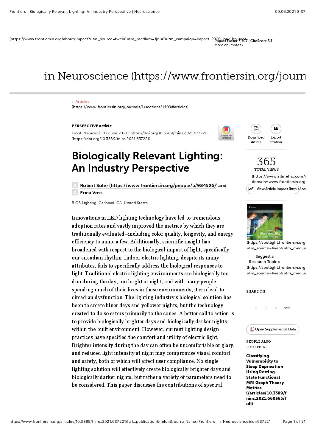 Biologically Relevant Lighting: An Industry Perspective