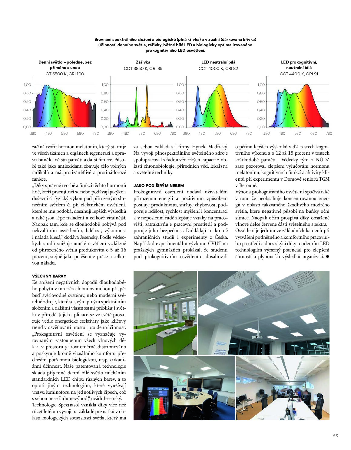 Umělé osvětlení s nevhodným spektrálním složením má negativní vliv na lidskou koncentraci, výkonnost a náladu. Lidé tráví většinu dne pod umělým osvětlením, což může negativně ovlivnit jejich zdraví a vitalitu. Správné spektrální složení světla je důležité pro fungování cirkadiánního rytmu a hormonálních procesů v těle, které ovlivňují náladu, výkon a regeneraci. Umělé osvětlení může snížit produktivitu a celkovou náladu až o 16 procent.