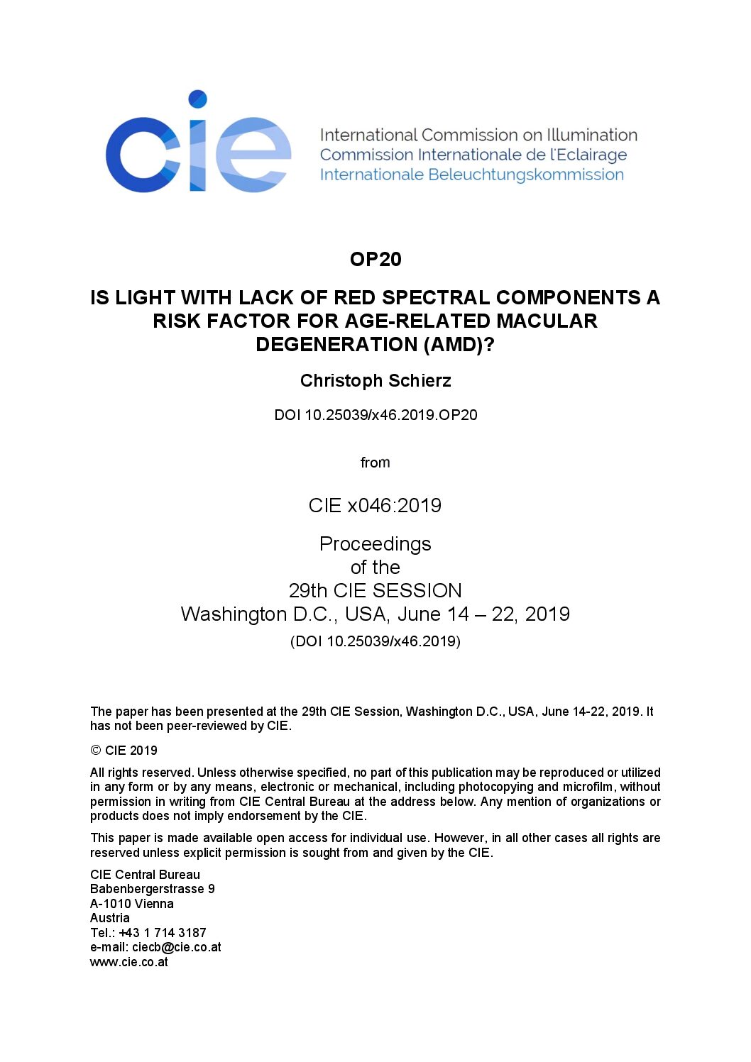 Uznávaná globální autorita v oblasti osvětlování CIE (International Commission of Illumination) zveřejnila stanovisko ke vztahu škodlivého modrého světla v krátkých vlnových délkách a fotobiomodulačních červených dlouhých vlnových délek k věkem podmíněné makulární degeneraci sítnice (AMD)