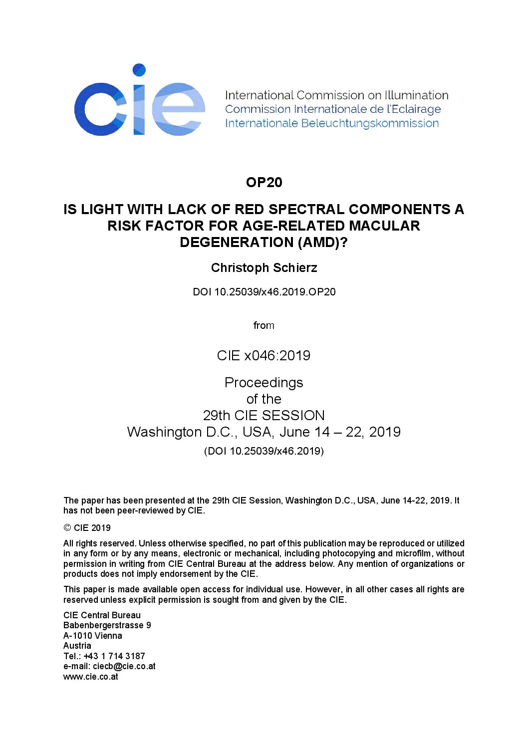 OP20 IS LIGHT WITH LACK OF RED SPECTRAL COMPONENTS A RISK FACTOR FOR AGE-RELATED MACULAR DEGENERATION (AMD)