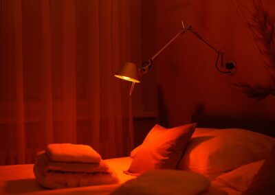 - Večer se jemně přepíná do teplých tónů, které organismus připravují na odpočinek a noční regeneraci.