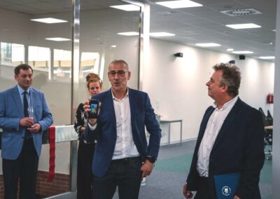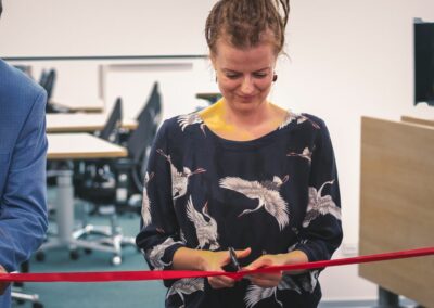 Symbolickou červenou pásku společně přestřihli rektor VŠE Petr Dvořák, prorektor pro rozvoj a Corporate Relations Ota Novotný a Aneta Mináčová z Ministerstva školství, které se na celkové investici do učebny ve výši 13 milionů Kč významnou měrou podílelo. Za Spectrasol se účastnil výkonný ředitel Daniel Jesenský.