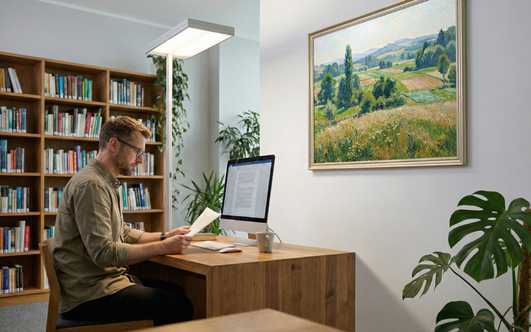 Spectrasol s.r.o.: Prokognitivní plnospektrální lampa Spectrasol Terra pro více energie, lepší soustředění a podporu zraku v kanceláři.