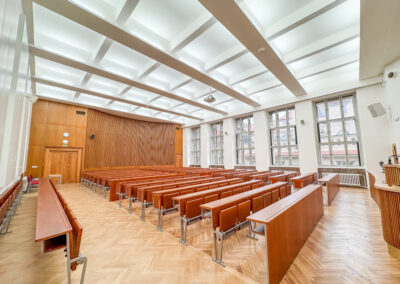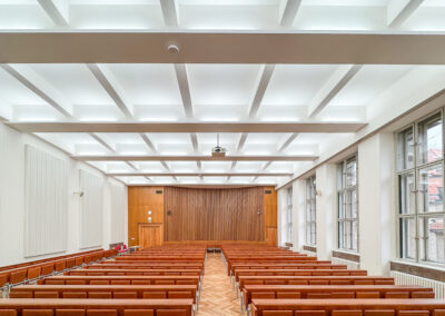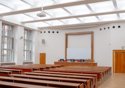 V roce 2024 Právnická fakulta oznámila rozhodnutí uskutečnit rozsáhlou rekonstrukci interiérů včetně osvětlení. Výhercem veřejné zakázky na část projektu osvětlení rekonstruovaných učeben se stala stavební firma Mozaik, která následně přizvala Spectrasol ke spolupráci na dodávce osvětlení. K samotné realizaci 1. etapy pak došlo v létě 2024, kdy se začala rekonstruovat aula a učebny.