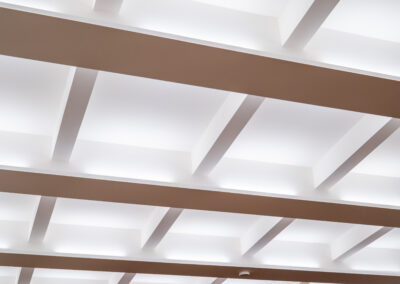 Výsledkem jsou v podstatě „neviditelná“ osvětlovací tělesa, která díky optimální nepřímé distribuci světla a odrazu od akustických prvků potažených speciální fólií šíří příjemné plnospektrální světlo způsobem, který skvěle napodobuje nebe nad hlavou.
