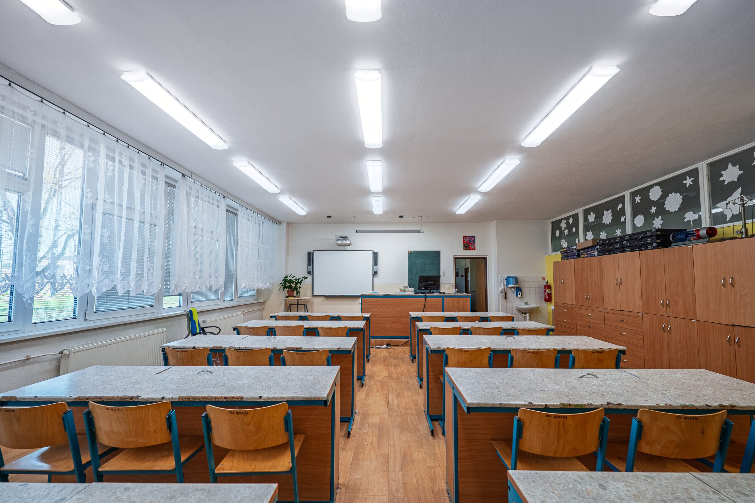 Původní zářivkové osvětlení ve škole bylo nevyhovující – světla problikávala (flicker efekt), měla nepříjemný odstín a
