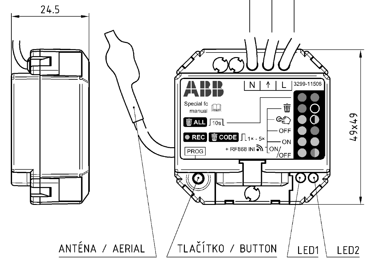 – V případě nesprávného nastavení přijímače ABB, nebo opakovaných nesystematických pokusů o spínání tlačítkem či bezdrátovým tlačítkem hrozí, že se LED driver ve svítidle omylem dostane do funkce koridor či jiné specifické funkce, ve které není možné svítidlo normálně ovládat. Pro deaktivaci těchto režimů postupujte podle návodů pro příslušný driver použitý ve svítidle.