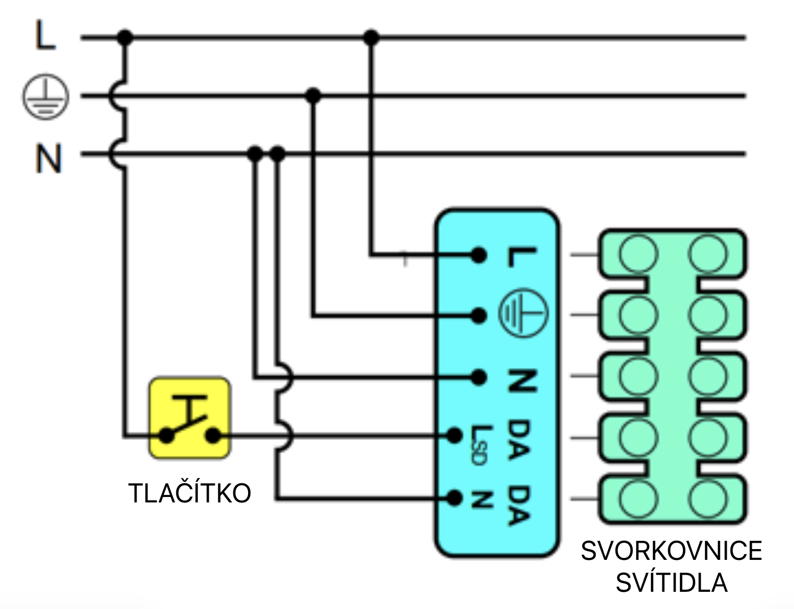 – svítidlo je trvale nápájené, k ovládání slouží 4. vodič – fáze spínaná tlačítkem