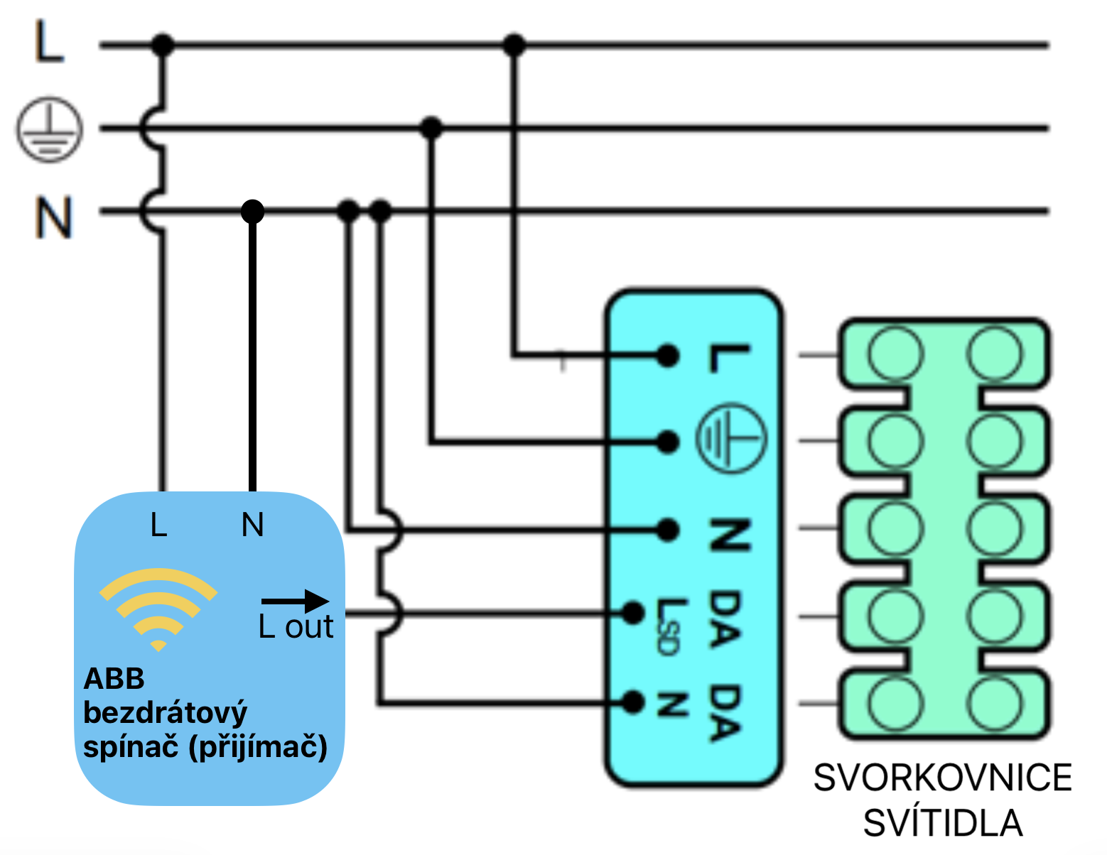 – pro každý okruh (svítidlo) které chcete samostatně ovládat je potřeba ke svítidlu zapojit bezdrátový spínač (přijímač)