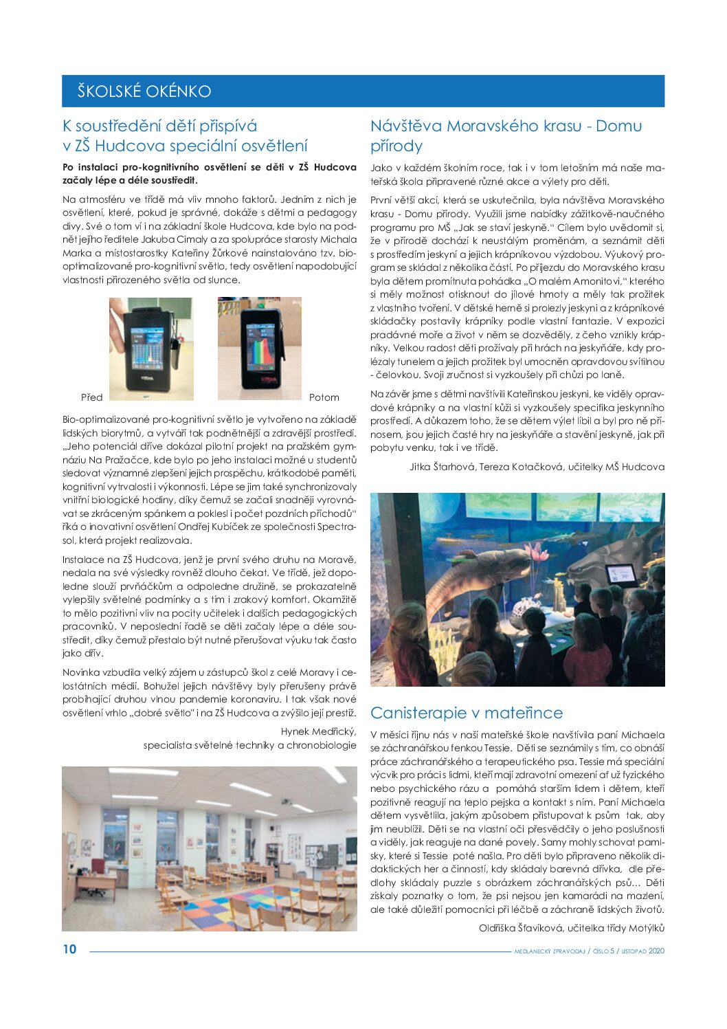 Školské okénko: K soustředění dětí přispívá v brněnské ZŠ Hudcova speciální osvětlení