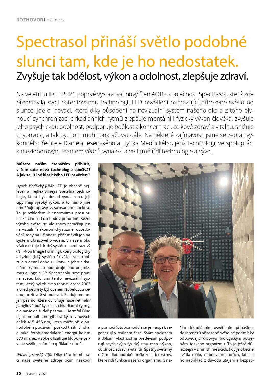 Na veletrhu IDET 2021 poprvé vystavoval nový člen AOBP společnost Spectrasol, která zde představila svoji patentovanou technologii LED osvětlení nahrazující přirozené světlo od slunce.
