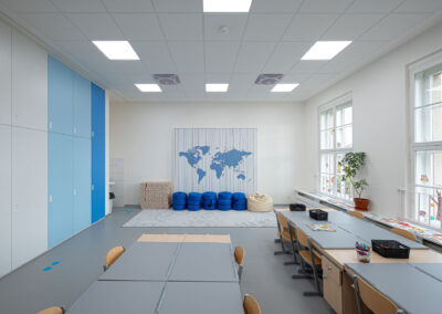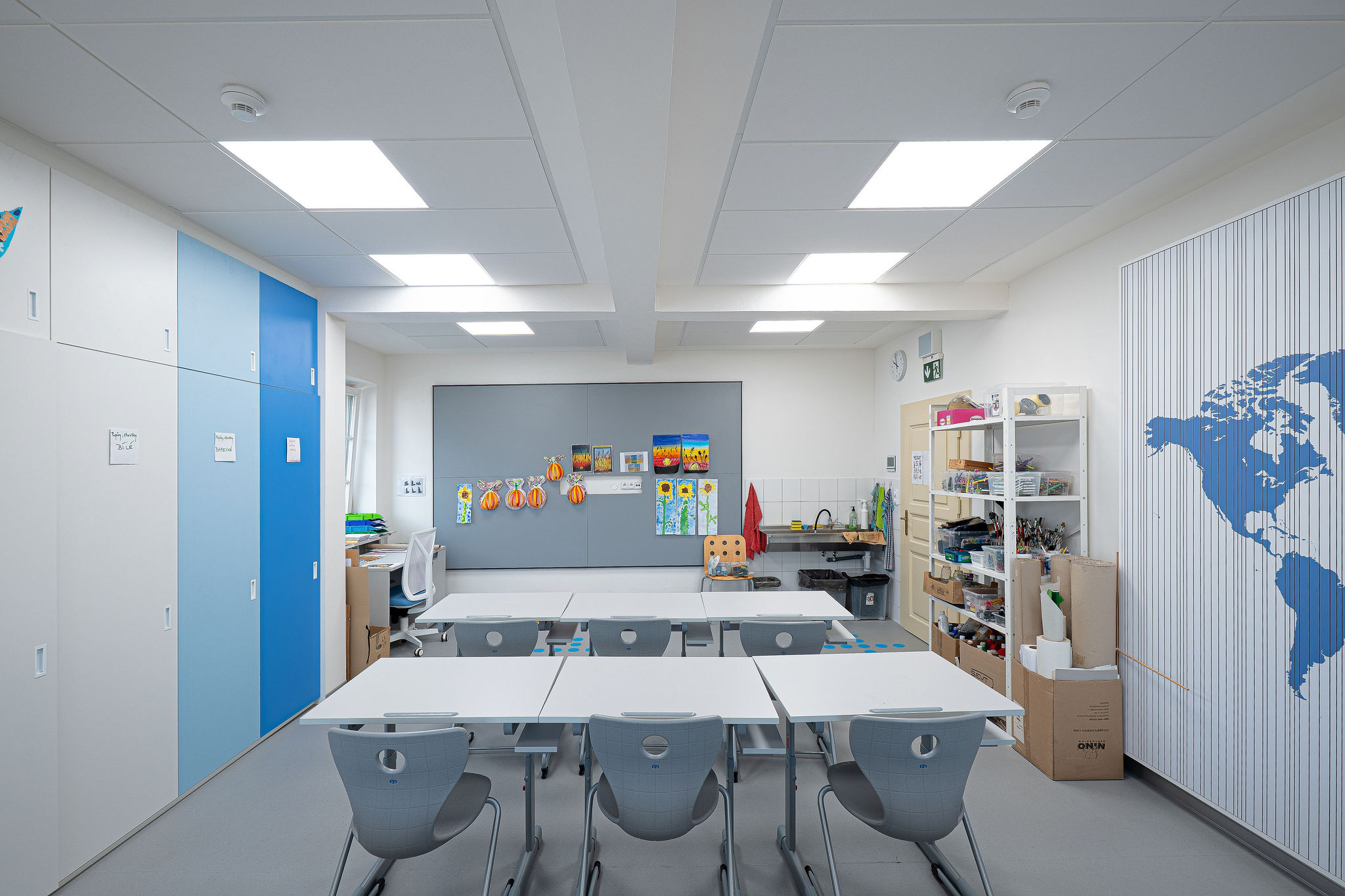 Podpora zraku je jedním z klíčových benefitů prokognitivního osvětlení – a na Základní a Mateřské škole Zrak v Praze na Vinohradech si to dobře uvědomují. Tuto školu navštěvují děti, které mají různé zrakové a psychické potíže, proto je pro ně zdravé prostředí velmi důležité. Už v roce 2021 zde proběhla pilotní instalace prokognitivního LED osvětlení Spectrasol, které napodobuje přirozené denní světlo. Na základě pozitivních zkušeností se škola i zřizovatel v roce 2025 rozhodli rozšířit osvětlení na celou budovu.