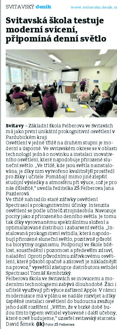 Svitavy Základní škola Felberova ve Svitavách má jako první unikátní prokognitivní osvětlení v Pardubickém kraji.