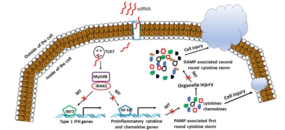 Unfortunately, as usual there is a lack of immediately available and effective treatments for these public health threats, thus, leading to high mortality. The underlining mechanisms for the high mortality commonly involves free radical attack and destructive inflammation in numerous tissues and organs. For example, the targeted tissue for the Ebola is vascular system while the lung is the target for sulfur mustards and COVID-19. In COVID-19, the free radical formation and massive inflammatory reaction is caused by the exaggerated innate immune response of the host against the pathogens. This hyperactive innate immune response is associated with the release of a large quantity of cytokines referred as a “cytokine storm”. This phenomenon is also observed in the vesicant chemical warfare agent exposure and in Ebola virus infection. It appears that the pathogens per se serve as the pathogen associated molecular patterns (PAMPs) triggering the primary “cytokine storm” and the damaged molecules of the host cell resulting from the primary “cytokine storm” function as damage associated molecular patterns (DAMPs) to cause the secondary “cytokine storm”. This becomes a vicious cycle; if this vicious cycle is not interrupted, it causes massive tissue and organ damage and sometimes death. All of the authors mentioned above believe that melatonin is a molecule which has the capacity to break this vicious cycle. Melatonin is a powerful free radical scavenger to reduce the tissue oxidative damage and it is also an effective anti-inflammatory agent to depress the “cytokine storm”.