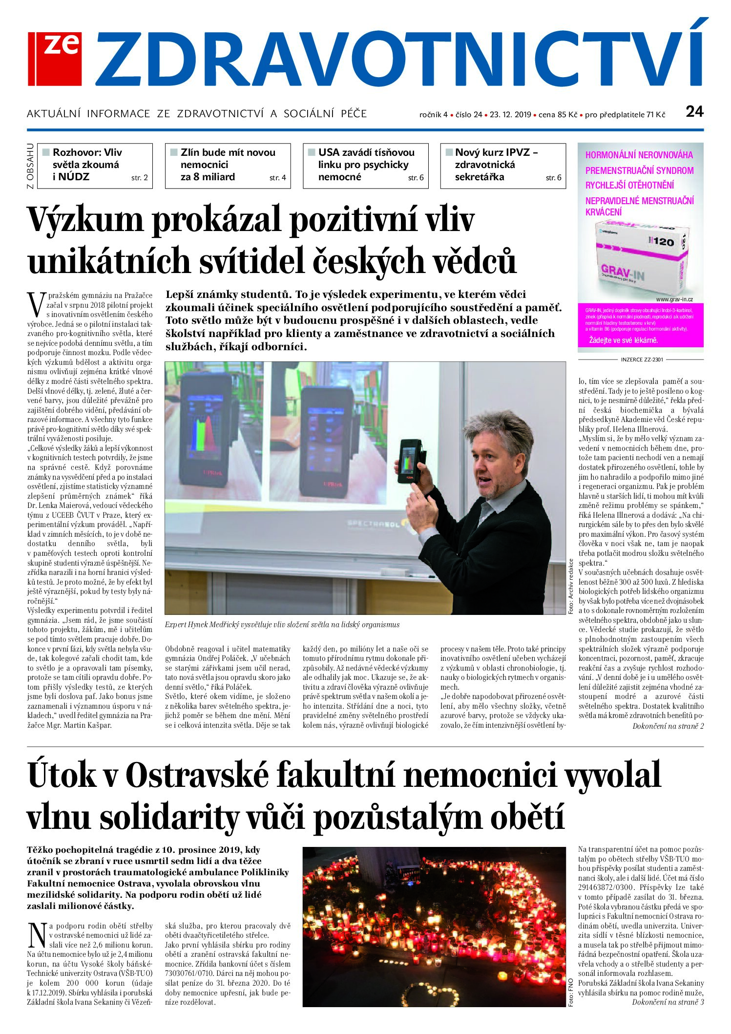 Ze Zdravotnictvi: Výzkum prokázal pozitivní vliv unikátních svítidel českých vědců